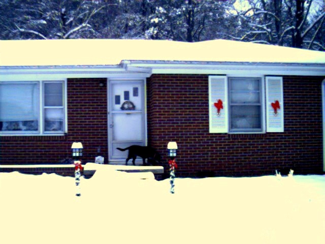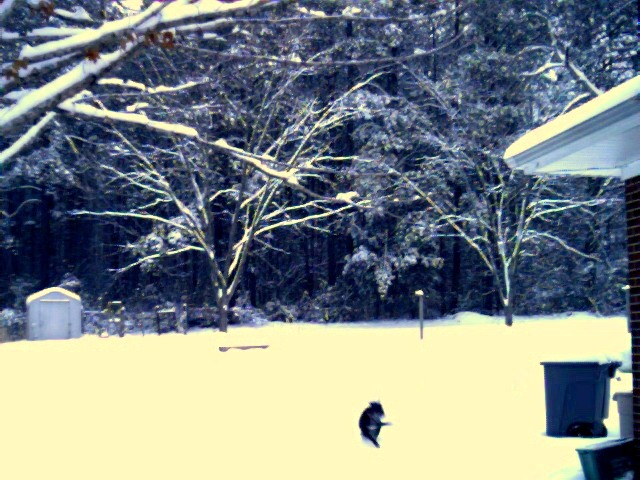 We ended up with a foot of snow in the yard. These pictures were taken just before 8 AM when we only had 8 inches.