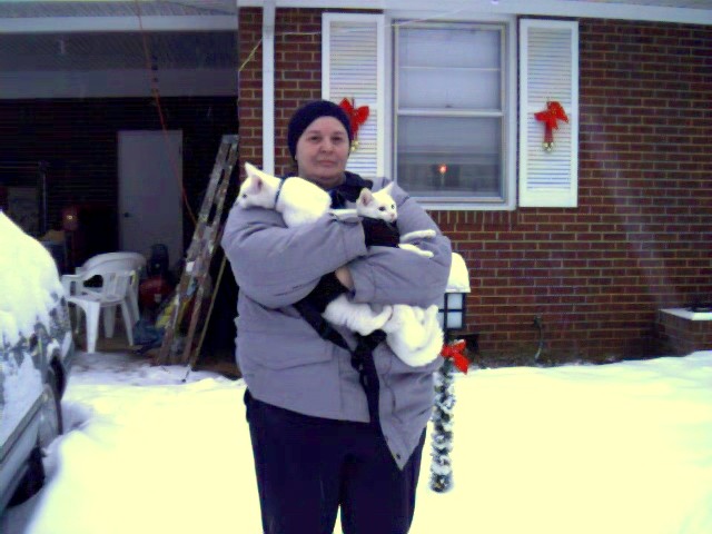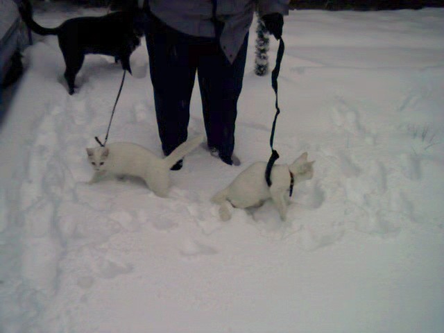 The twin kittens get taken out for their first snow