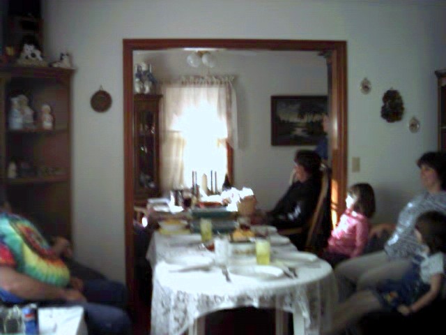 The Thanksgiving Table. Everyone is trying to duck out of the picture.